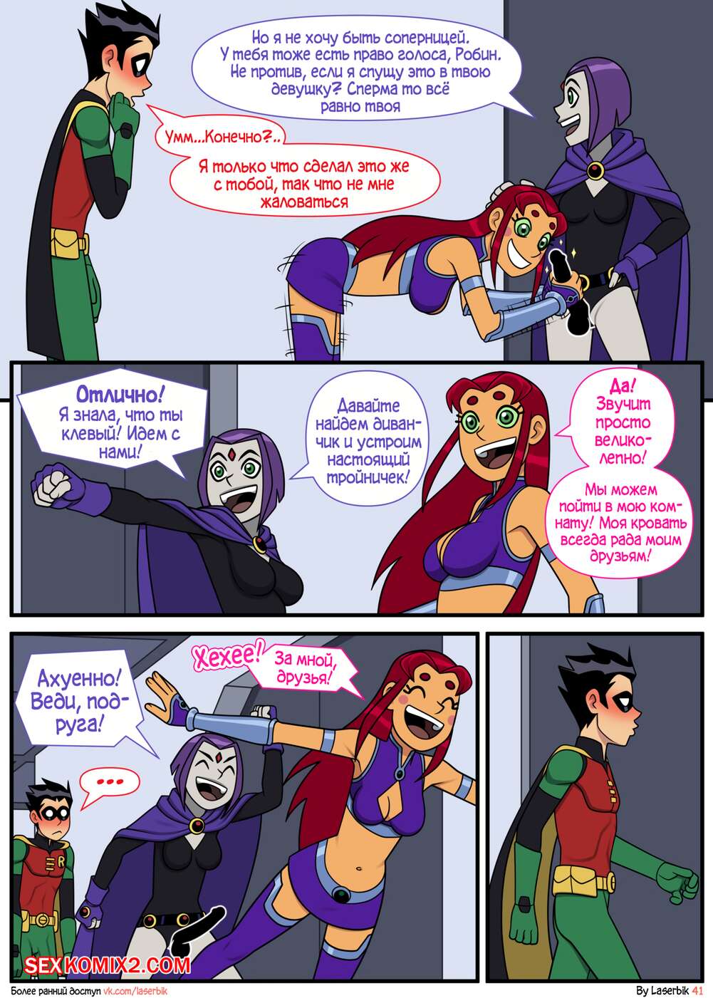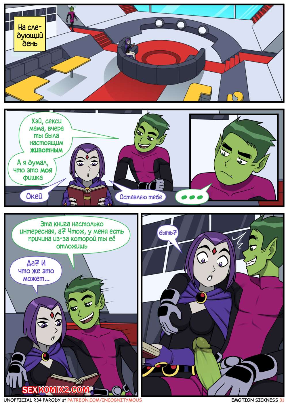 Порно комикс Титаны. Эмоциональная слабость. Часть 1. Emotion sickness. Teen titans. Incognitymous Молодые горячие красотки из команды Титанов были чертовски возбуждены и решили повеселиться со своим дружком. Они разделись перед ним и стали сосать его большой хуй, после чего дали ему себя выебать.