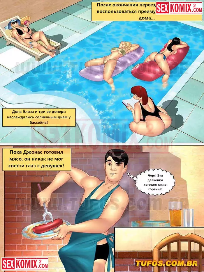 Порно комикс Тетя, кузины и племянник. Часть 1. Суета в день переезда.