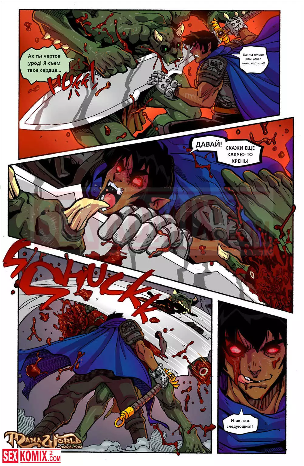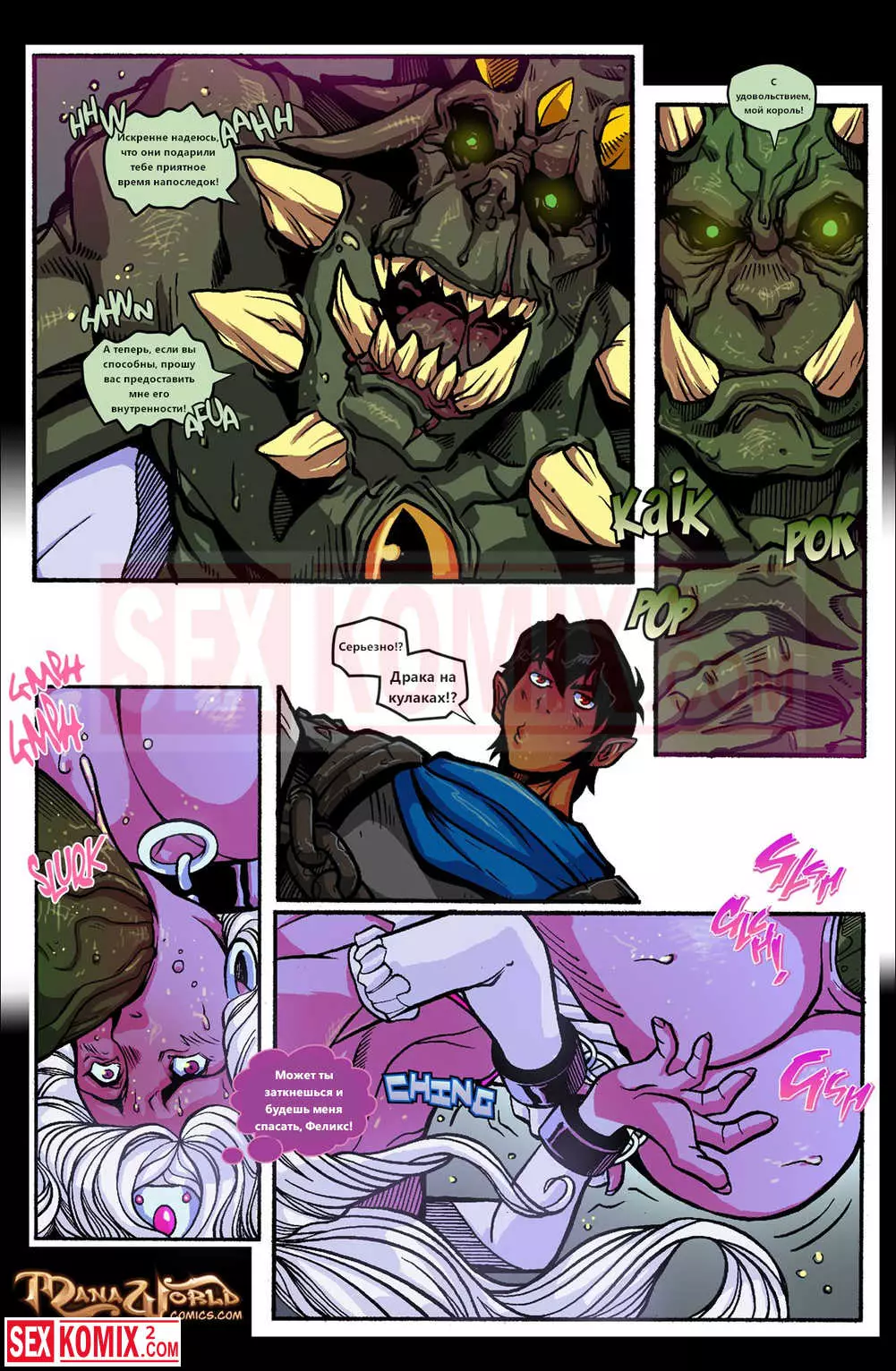 Порно комикс Mana World. Часть 19. Нечестивый брак. Для спасения своей подружки из грязных лап орков, которые решили пленит её и трахать по очереди, рыцарь раздобыл волшебный меч. Он ворвался в логово орков и сразился с ними один.