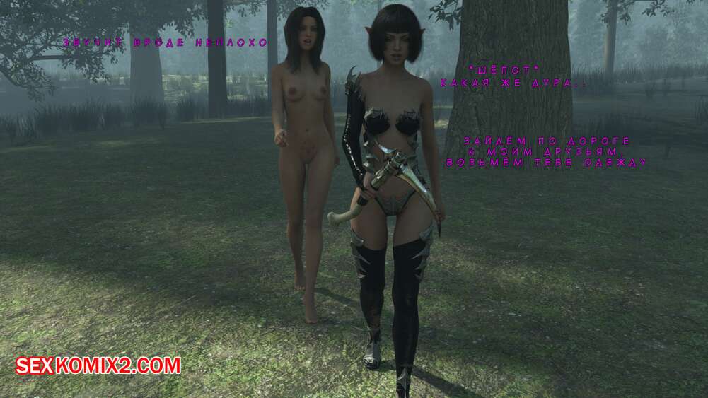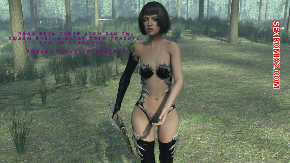 Порно комикс Анариэль. Эльфийская судьба. Часть 2. MilkaV. Продолжение приключений сексуальных эльфиек, каждый мужчина хочет трахнуть этих красоток. Двое таких озабоченный раздели эльфийку и заполнили ее рот спермой.