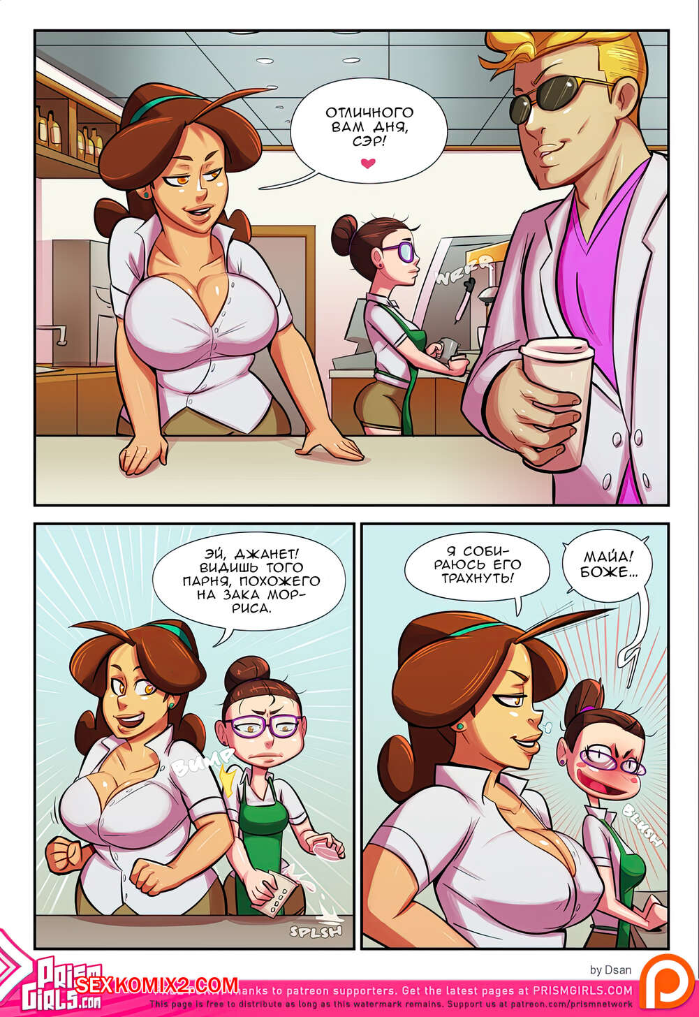 Порно комикс Чашечка любви. Часть 2. Cup OLove. Dsan Горячая сисястая брюнетка была очень возбуждена и хотела трахаться. Она разделась перед своей подругой и стала сосать ее большой хуй, после чего дала ей себя хорошенько выебать.