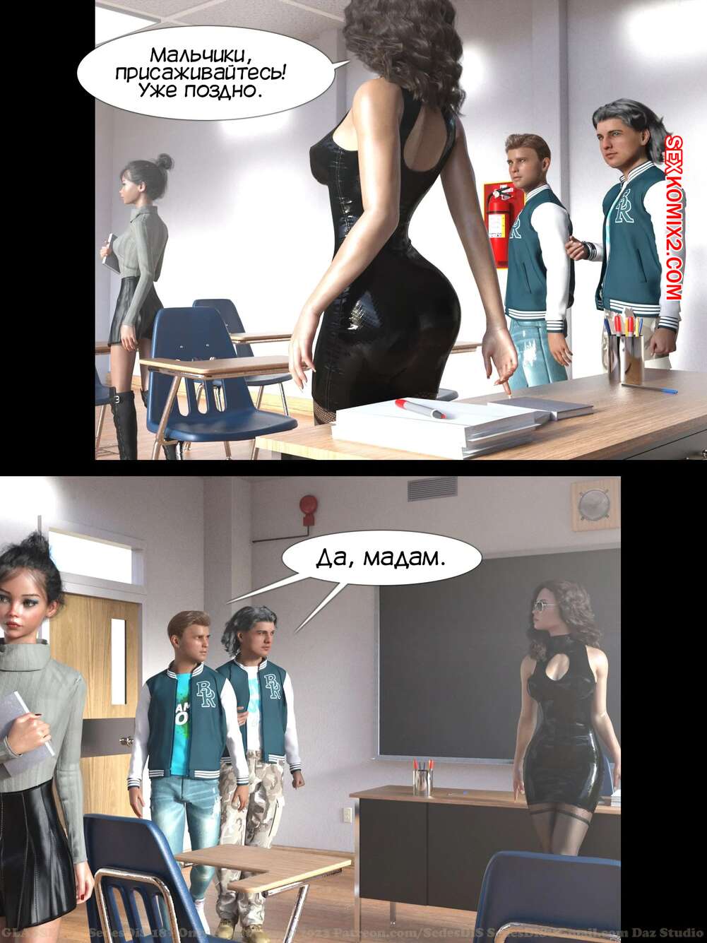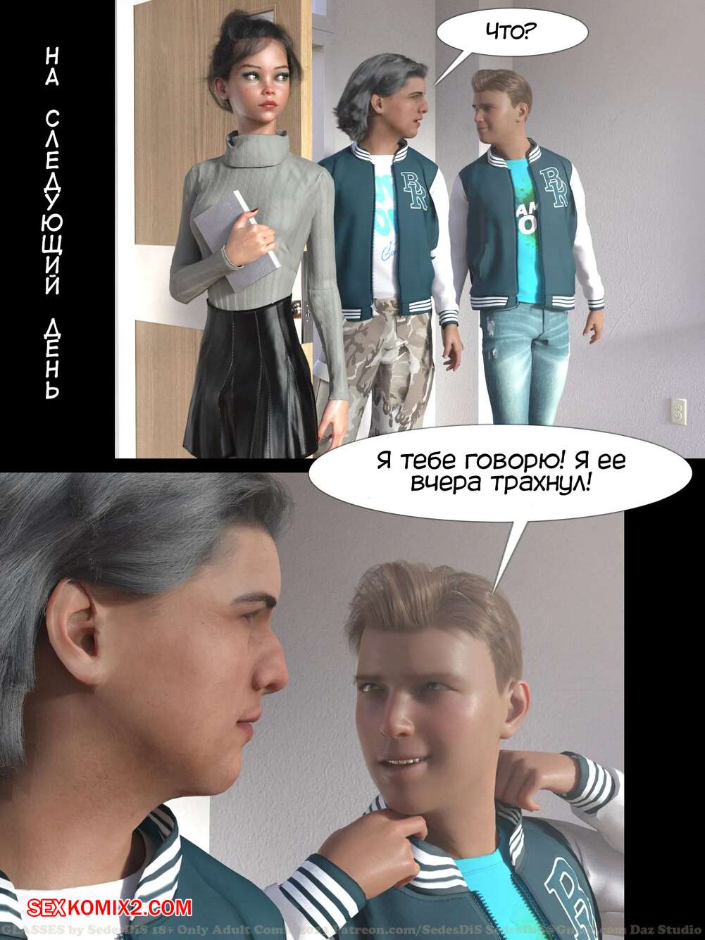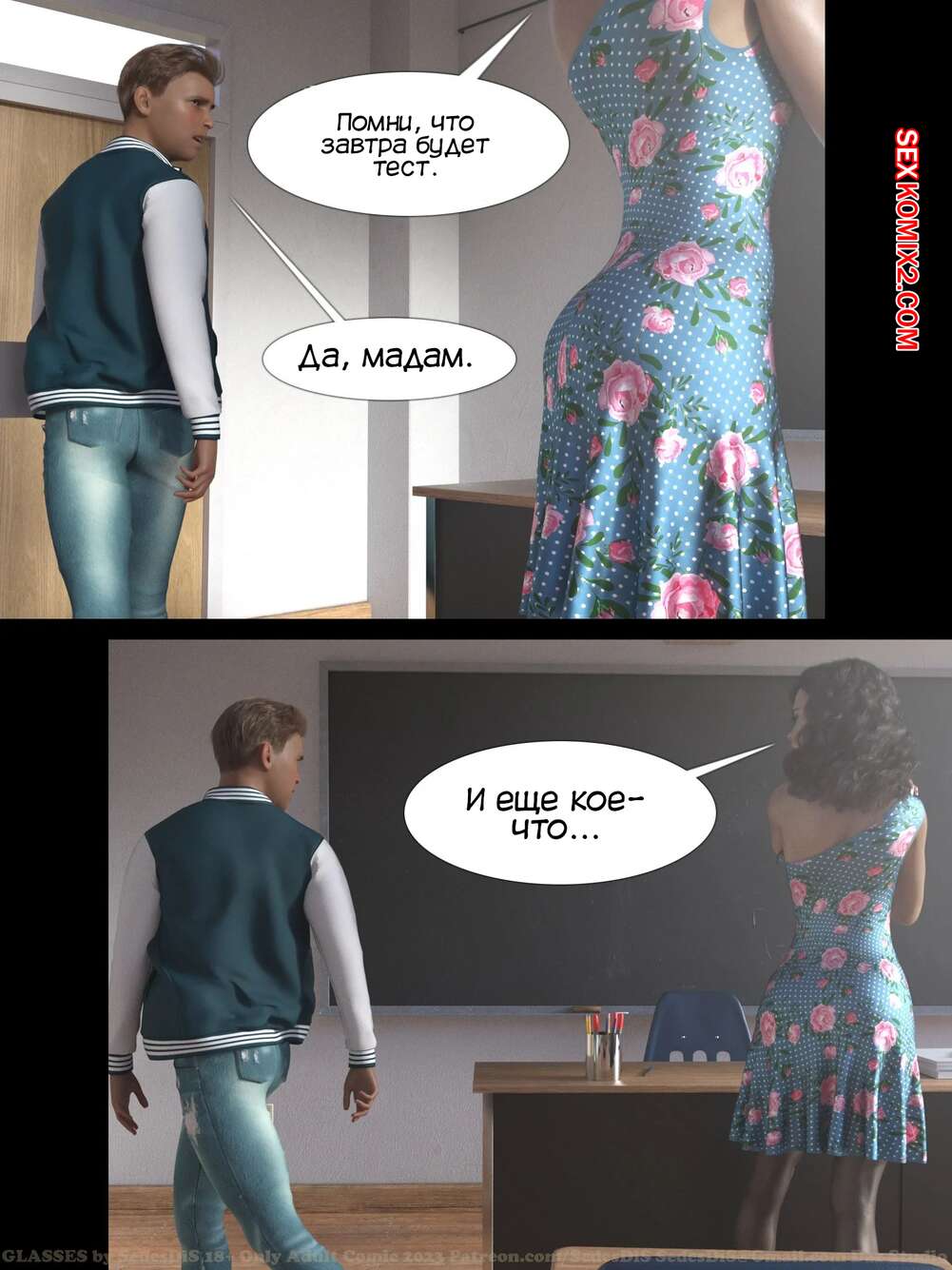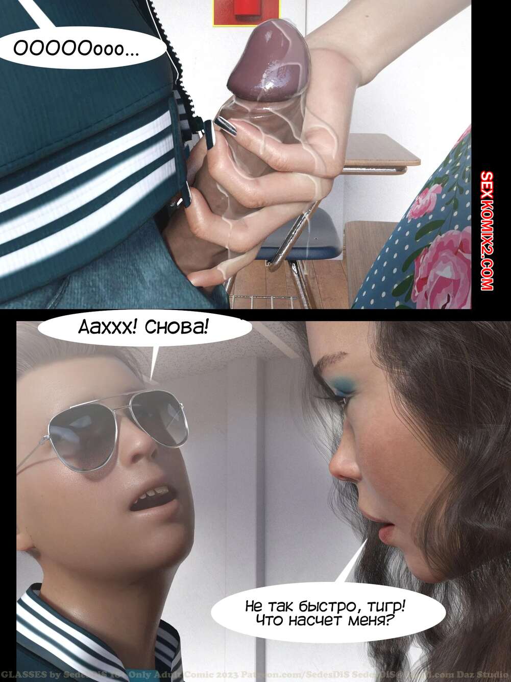Порно комикс Очки. Часть 1. Glasses. SedesDiS. Парень остался после уроков у сексуальной училки и стал на нее смотреть в очках, которые позволили ему увидеть красокту голой. Училка спалила стояк парня, от чего она возбудилась и дала парню себя выебать.