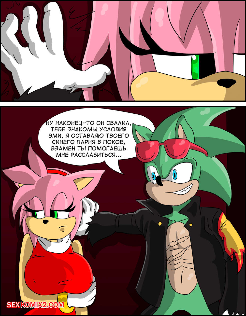 Порно комикс Sonic. Эми Перил. Amys Peril. Loonyjams. Зеленый парень постоянно достает Соника, поэтому красотка Эми хочет решить проблемы любимого. Она встретилась с задирой и стала сосать его большой хуй, после чего дала ему выебать свою пизденку.