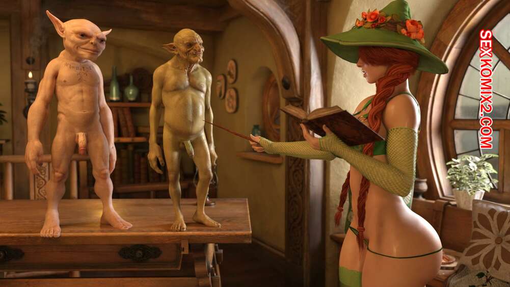 Порно комикс Harry Potter. Ведьма и гоблины слуги Мирабель Чесноук. Faceman3D Горячая рыжая красотка была очень возбуждена и решила повеселиться с двумя гоблинами слугами с большими хуями. Девушка разделась и отсосала им, после чего дала гоблинам выебать себя во все дырочки.