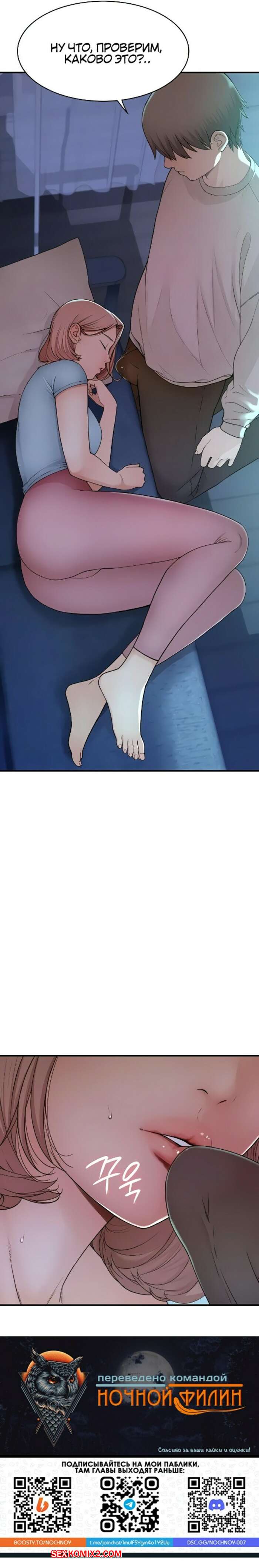 Порно комикс Зависимость от мачехи. Часть 13 и 14 и 15. Addicted to my stepmother Парень вернулся домой после встречи с друзьями и застал свою мачеху спящей. Он был очень возбужден и хотел трахаться, поэтому стал раздевать милфу, желая ее выебать.