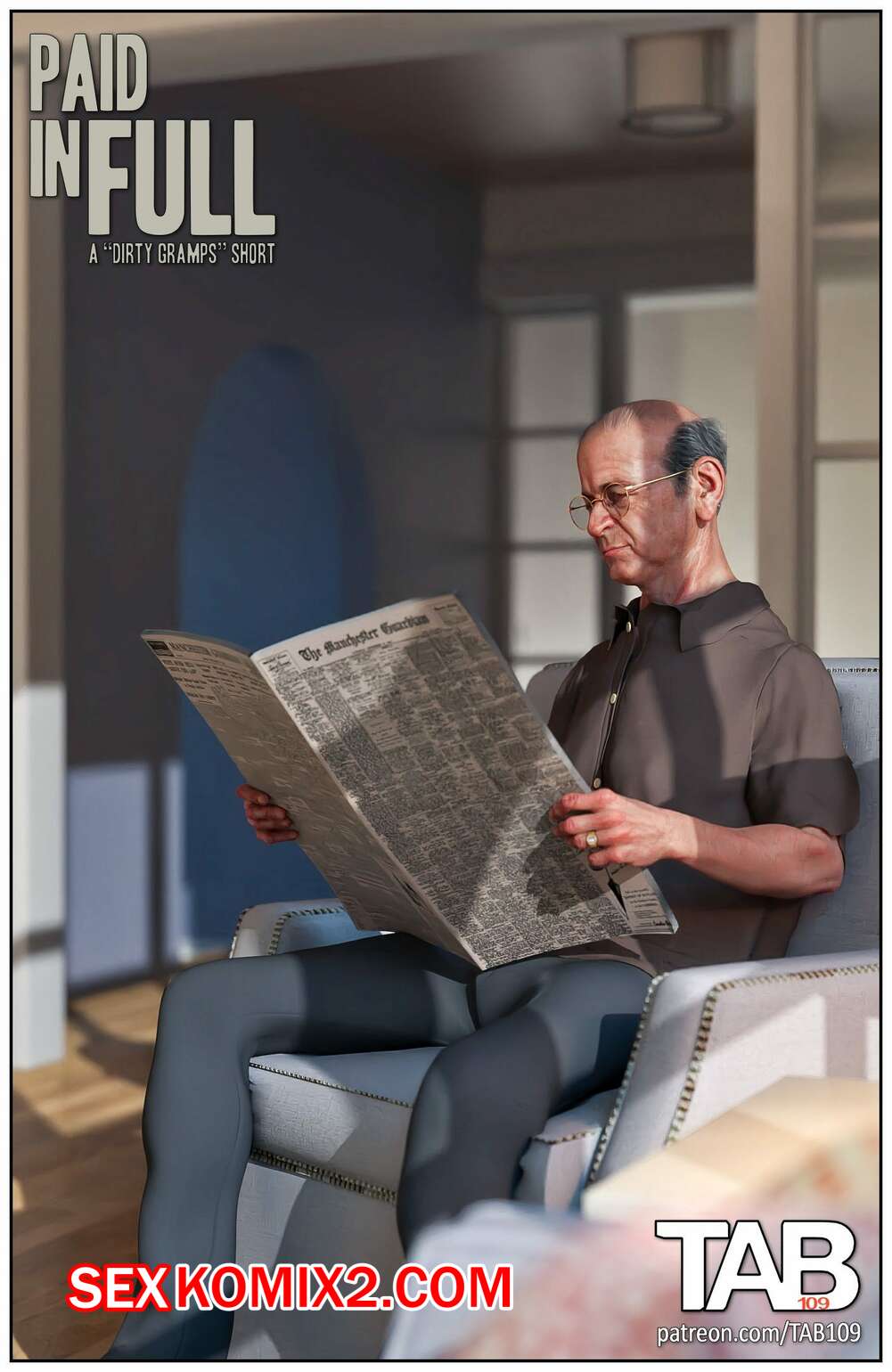 Порно комикс Оплата по полной. Paid In Full. TAB109 К старику зашла молодая блондинка соседка, чтобы расплатиться за долг матери. Девушка встала на колени и отсосала большой хуй старика, после чего он кончил ей в ротик.