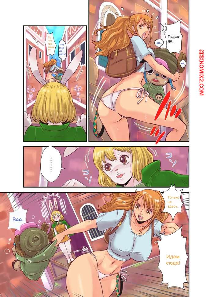 Порно комикс Ван Пис. Палочка Чоппера. Часть 3. CHOP STICK Горячие красотки были очень возбуждены и решили повеселиться со своим дружком. Они разделись и соблазнили парня, после чего дали ему себя хорошенько выебать.