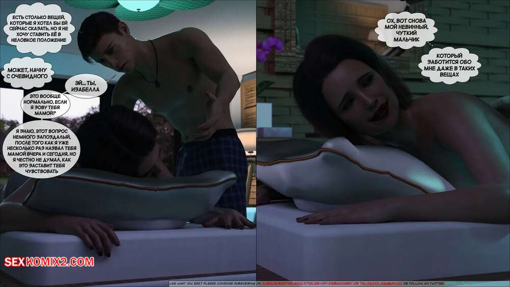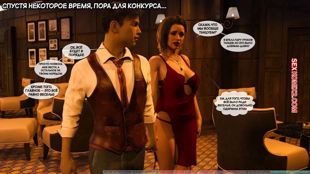 Порно комикс Материнский стыд. Часть 2. A Mothers Shame. Tal3s of Debauchery Изабелла с сыном сняли номер в отеле, чтобы провести время в необычной обстановке. Они отправились в бар потанцевать, после чего между ними стало расти сексуальное возбуждение.