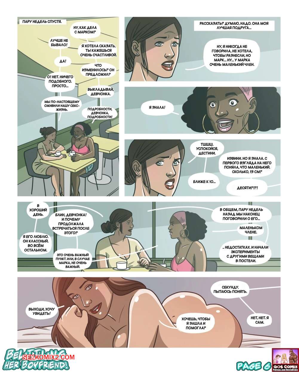 Порно комикс Принижение своего парня. Belittling Her Boyfriend. Devin Dickie. Горячая брюнетка трахалась со своим парнем, но не получила никакого удовольствия от его крошечного члена. Девушка покупает большой черный дилдо, чтобы чтото ощущать во время секса с любимым. Она делится проблемой с подругой и та советует ей попробовать настоящие черные члены.