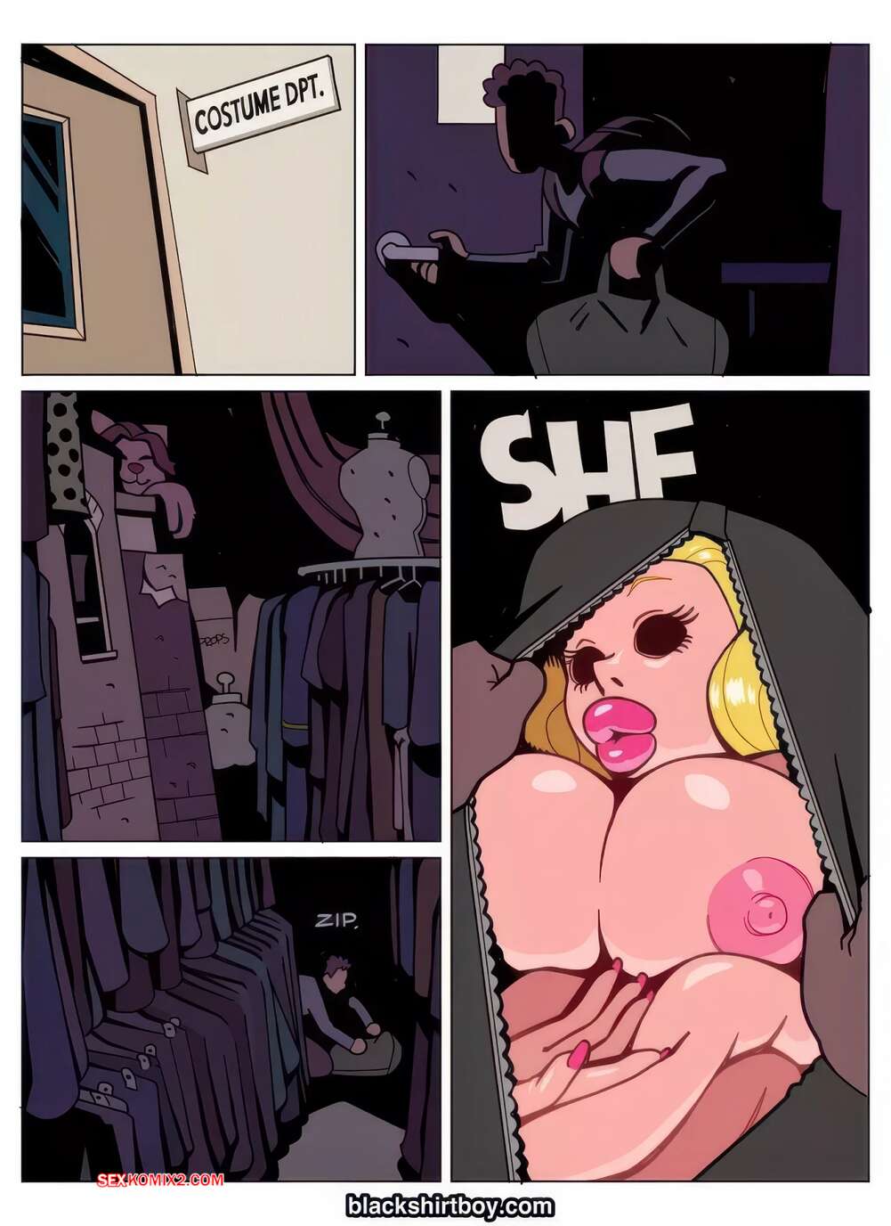 Порно комикс Кожа. Часть 1. Layers. BlackShirtBoy. Парень нашел в школе кожу горячей блондинки и не смог устоять перед соблазном надеть ее. Аппетитная блондиночка сразу стала притягивать внимание парней, желающих повеселиться с девушкой.