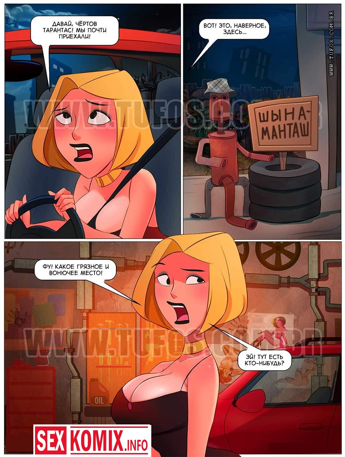 Порно комикс Негритос Пиконе. Часть 2. Инструмент для шиномонтажа. Блондинка проторчала в магазине пол дня и скупила пол магазина. А когда подошла с покупками к машине, увидела, что колесо спустило. На её счастье, рядом был шиномонтаж, где обслуживал и машины и их хозяек негритос Пиконе. Когда блондинка подъехала к станции шиномонтажа, она даже и представить себе не могла, как ей повезло.