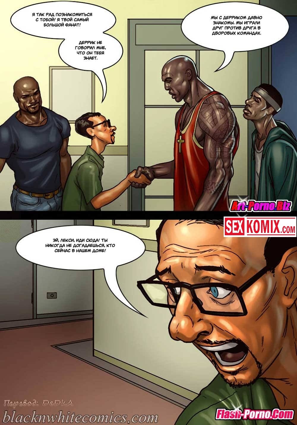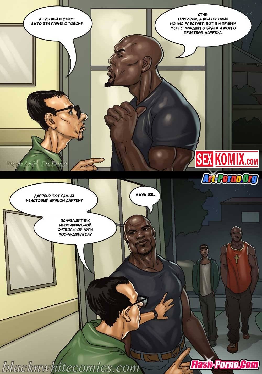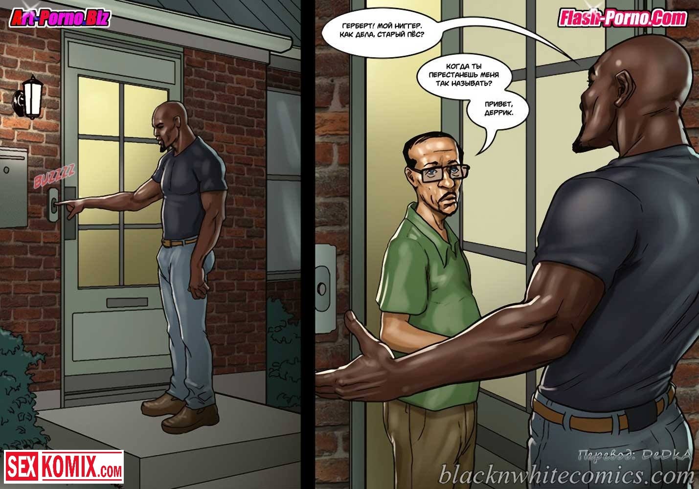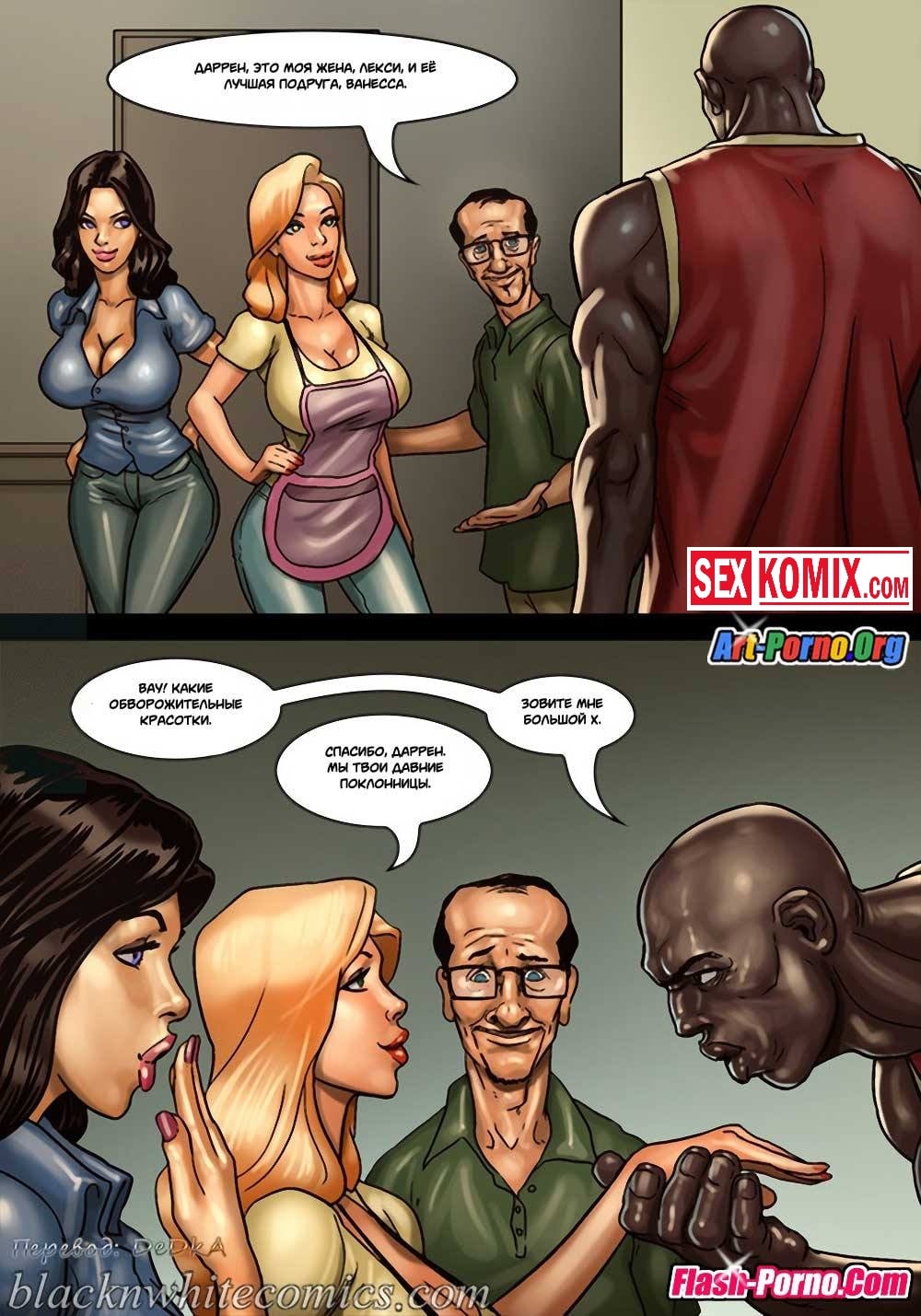 Порно комикс Игра в покер. Часть 2. Покер гейм. Ставки повышаются. После того как простой парень играл в покер с чернокожими ребятами, он очень сильно задолжал. И чтобы отыграться они устроили новую партию у него дома. Во время игры мужчина снова стал проигрывать, и чтобы разрядить обстановку к ним пришла жена проигравшего. Она очень сексуальная девушка с большими сиськами, чернокожие парни сразу обратили на неё внимание и захотели её трахнуть. Именно для этого она туда и пришла, после того как они уже занимались горячим сексом, к ним пришла ещё и её подруга и стало еще веселей.