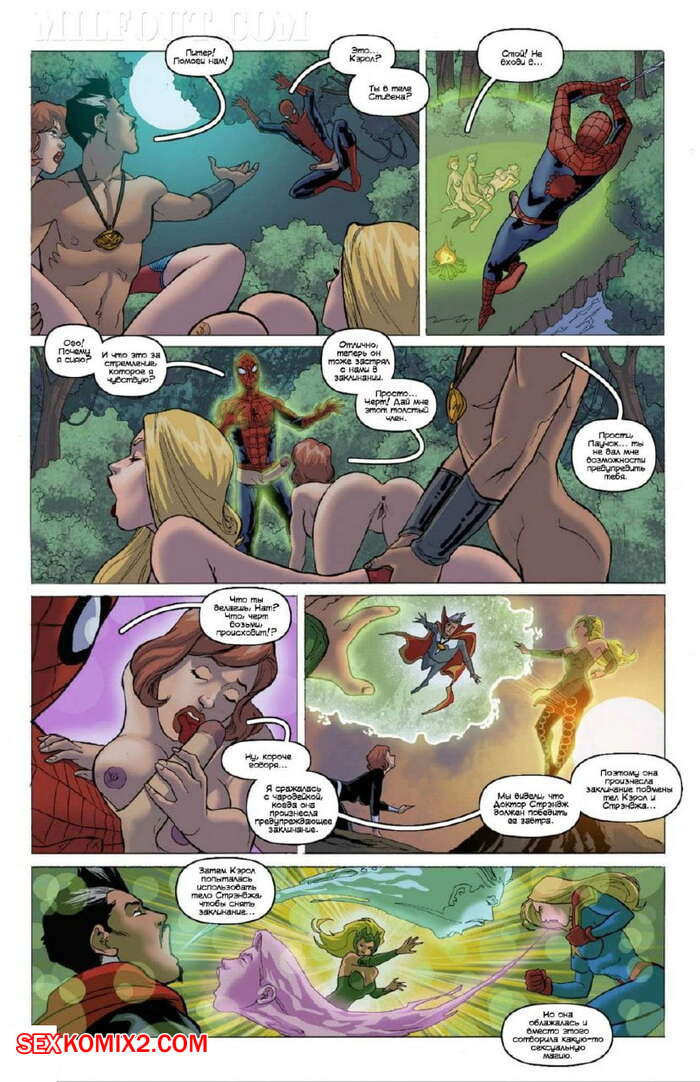Порно комикс Марвел. Порно Царств Странные Перемены Паучок застал две парочки супергероев за еблей. Они не стали стесняться его и позвали его присоединиться к ним. Паучка быстро раздели и красотки стали сосать его большой хуй, а затем дали выебать свои пизденки.