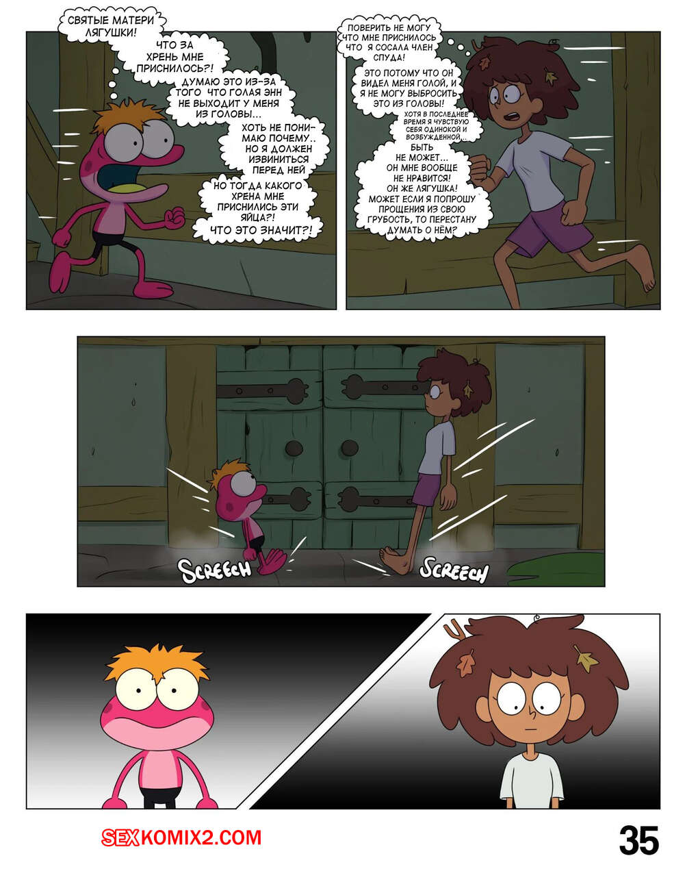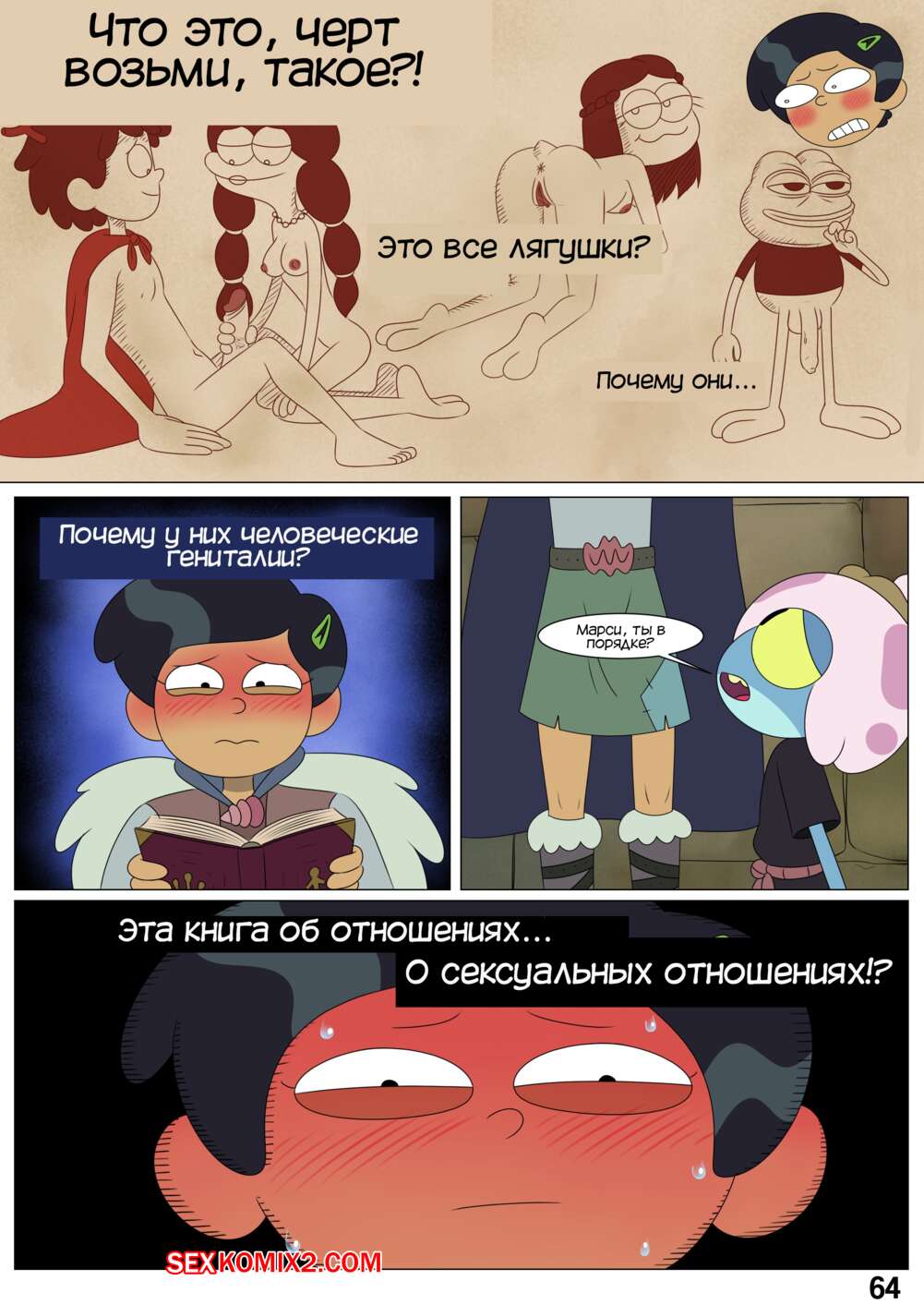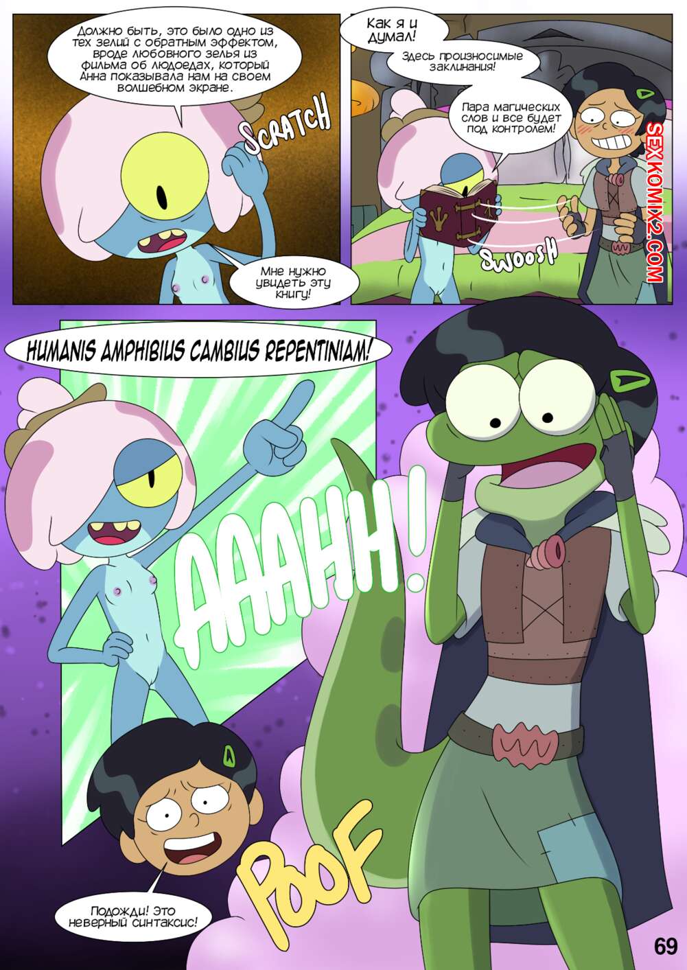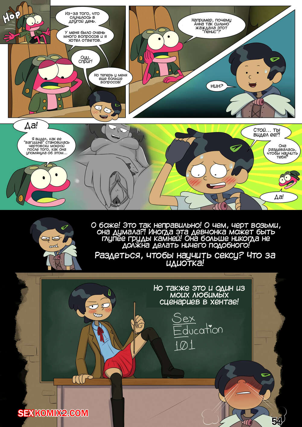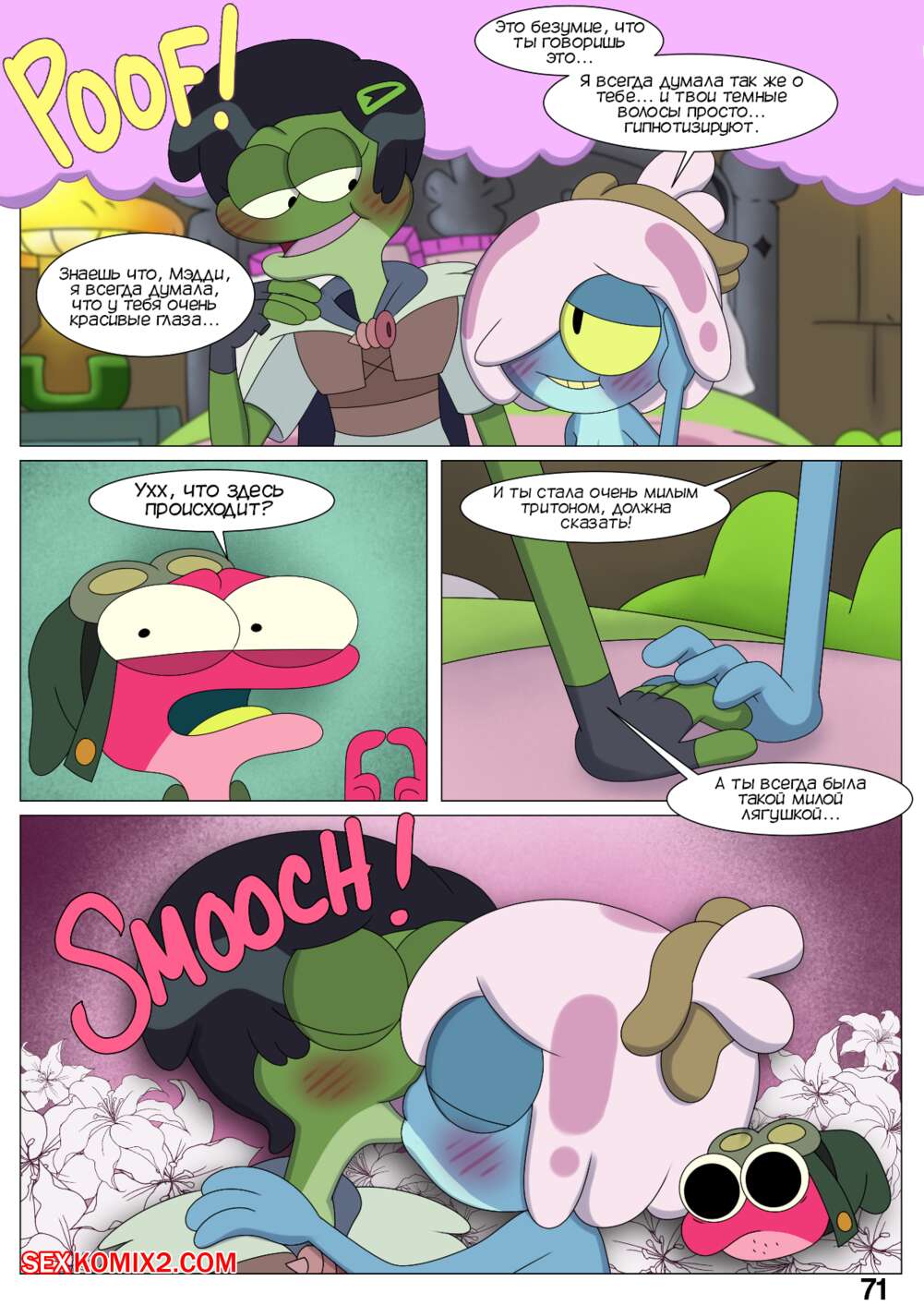 Порно комикс Ох мой лягушонок. Oh My Frog. Nocunoct. Иногда парень превращается в лягушку, но раньше это не доставляло хлопот. Пока он не начал ухаживать за девочкой, однажды он превратился прямо вовремя их свидания. Как отреагировала на это девушка смотрите в комиксе.